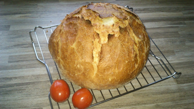 Másnap alaposan belisztezett munkafelületen áthajtogatjuk mint a pogácsát. Lisztezett konyharuhára tesszük a tésztát és betakargatjuk vele, nehogy megszáradjon a felülete. Amíg a sütőt a fedeles sütőedényünkkel előmelegítjük 240-250C fokra, pihentetjük a kenyerünket. Az előmelegített edénybe emeljük a tésztát, rátesszük a tetőt és 30 percig lefedve sütjük. Ezután fedő nélkül 230C fokon szép pirosra pirítjuk a kenyeret. rácson hagyjuk kihűlni és csak 1 óra elteltével szeleteljük, már ha kibírjuk.